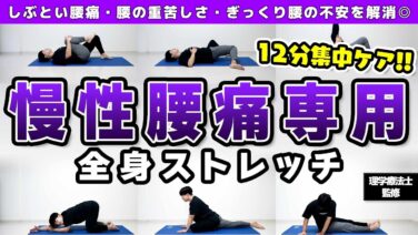 腰痛 立ったまま腰痛対策ストレッチ【9分間】 立ったままできる腰痛対策のストレッチをご紹介します。 腰痛の要因になりやすい筋肉を中心に伸ばしましょう。 太もも、おしり、背骨周辺、わき腹のストレッチが対策のポイントです。 立ったままおこなえば、すきま時間の活用にもなりますのでオスス... 2025.06.06 腰痛